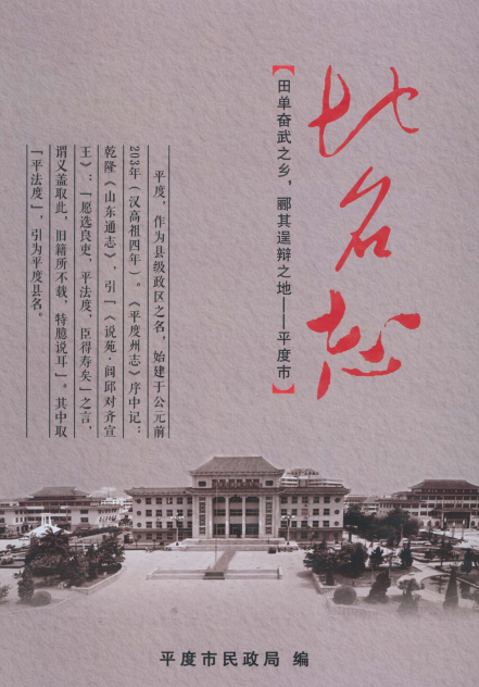 · 本山东省青岛市《山东省平度市地名志》2017.05 PDF电子版下载是PDF电子版不是实体书,PDF电子版可以在电脑、手机上浏览,请您知晓。您可以联系我们查看更多本志的截图