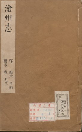 六册,共十五卷包括该志断限前沧州的疆域、建置、田赋、官师、兵防、人物、艺文等方面,是反映沧州自然地理、经济物产、人文风情等状况的资料全书。