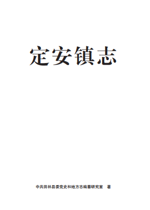 《定安镇志》记述内容上起清代,下限至2017年,全面、客观地记述和反映了田林县定安镇的自然、政治、经济、文化、社会生活等方面的内容。全书设概述、大事记、人物、附录等14篇46章,共40多万字。定安镇是田林县历史文化底蕴厚重的乡镇,从清代到中华人民共和国成立初期一直都作为县治所在地,也是我国近代史第二次鸦片战争导火索之一“西林教案”发生地。本志贯通古今,详今略古,上溯新中国成立前至清朝时期,为略;下限至 2017 年,为详。个别重要事件、数据或重要人物的简介适当下延.