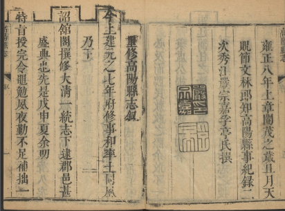 [雍正]高阳县志六卷 清嚴宗嘉修 清李其旋纂 清雍正八年(1730)刻本 119.6M